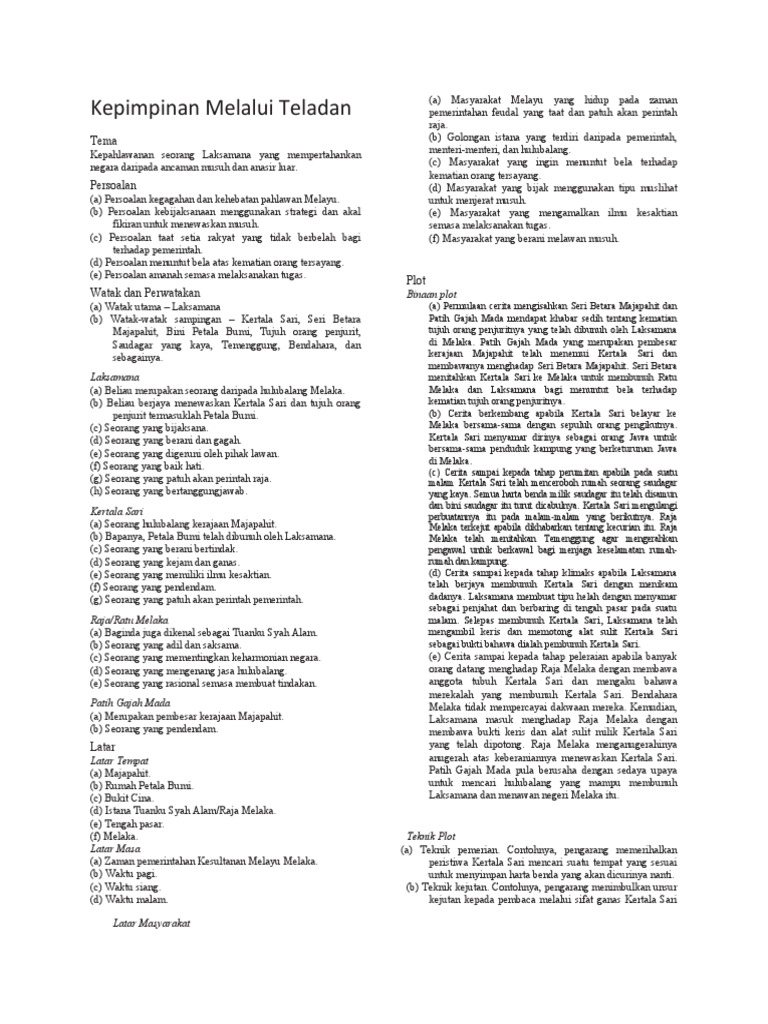Laman Bahasa Melayu Spm Nota Prosa Tradisional Kepimpinan Melalui Teladan Ting 4