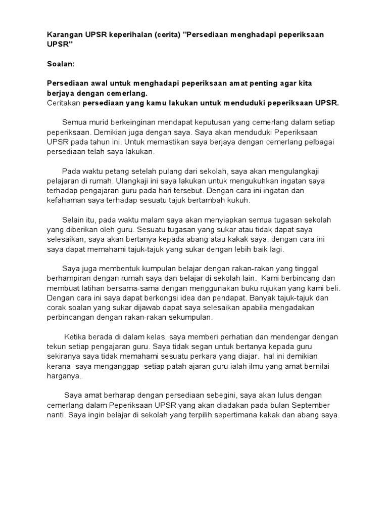. Bersikap sabar tabah dan tidak mudah putus asa. Karangan Terbaik UPSR Drpd E-Buku Unduh. Meningkatkan tahap keyakinan diri murid dan persediaan dalam menghadapi peperiksaan UPSR.
