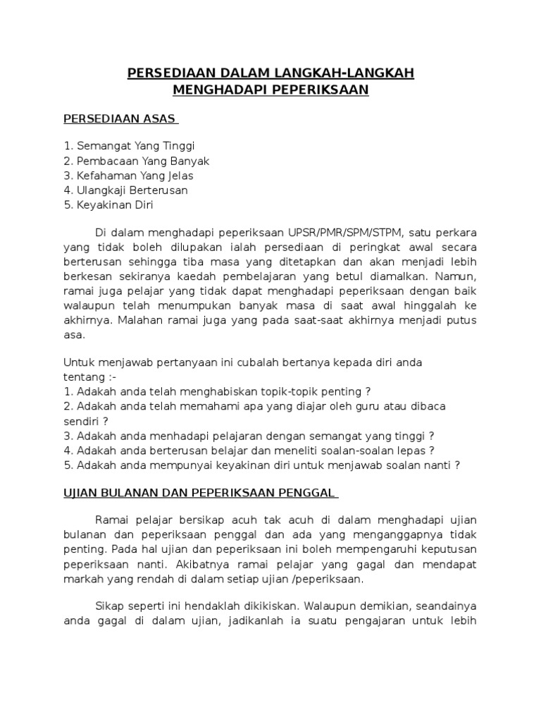 Persediaan Dalam Langkah Langkah Menghadapi Peperiksaan Pdf