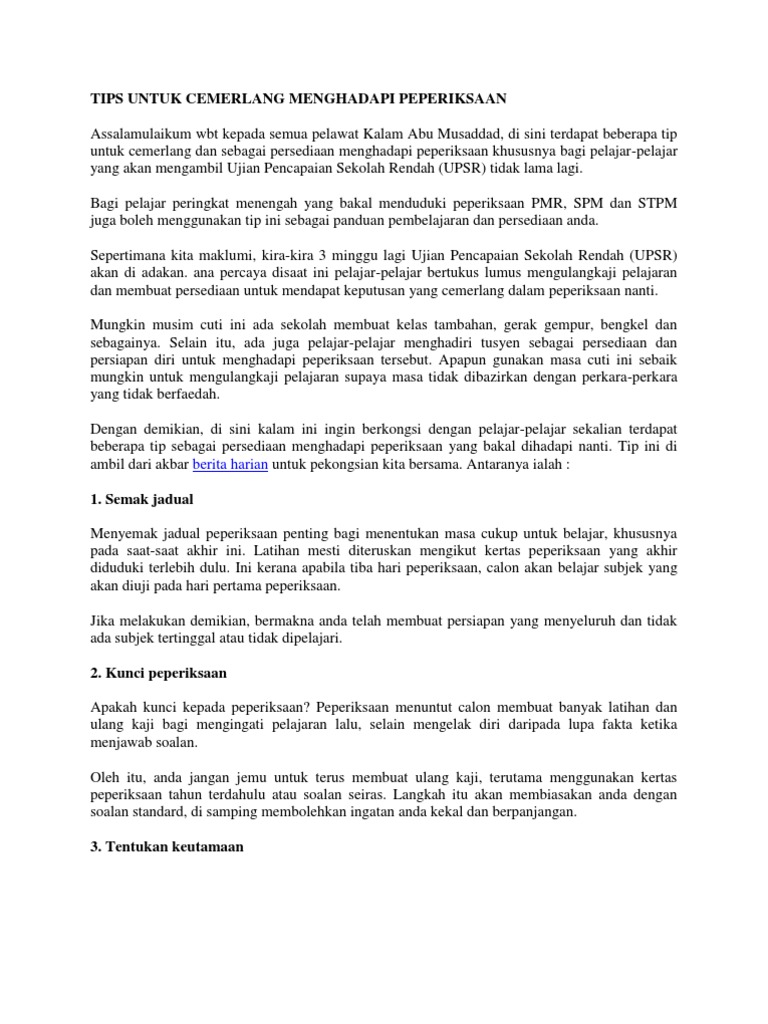 Tips Untuk Cemerlang Menghadapi Peperiksaan Pdf